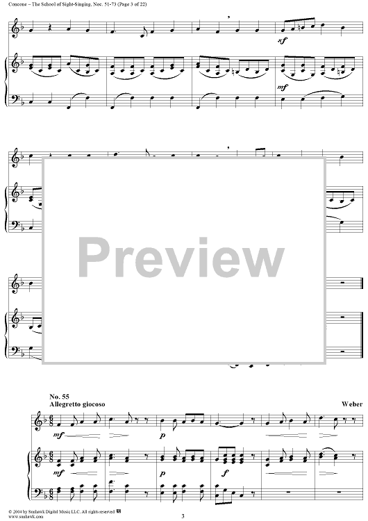 Digital Sheet Music for The School of Sight-Singing, Nos. 51 - 73 by Giuseppe Concone, B. Lutgen scored for Vocal Method; id:303374