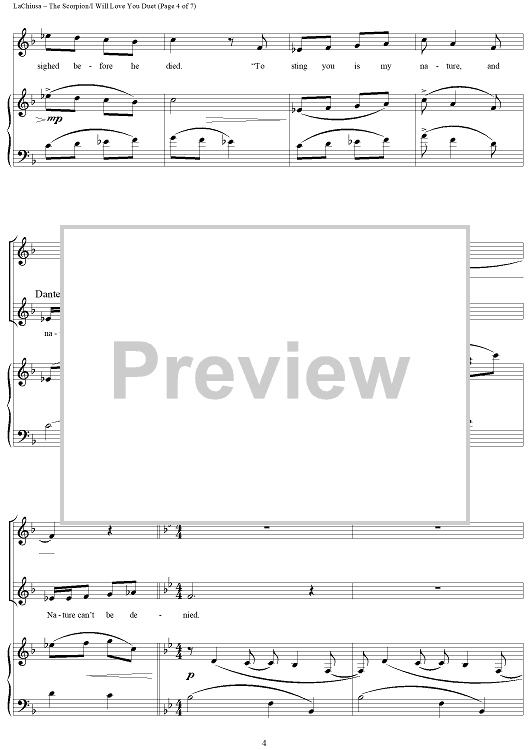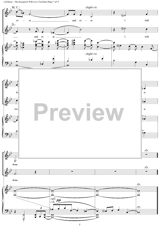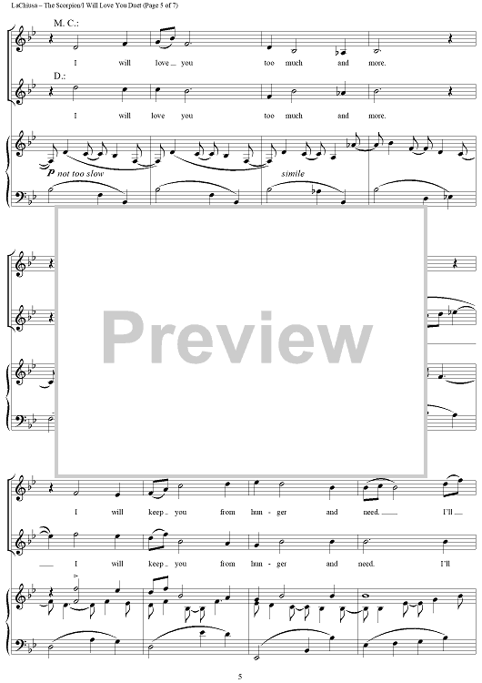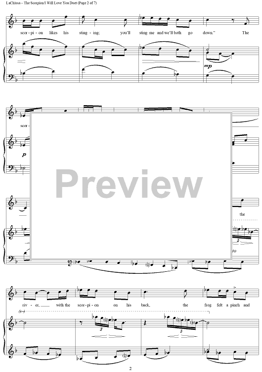 Digital Sheet Music for The Scorpion/I Will Love You (Duet) by Michael John LaChiusa scored for Piano/Vocal; id:310071