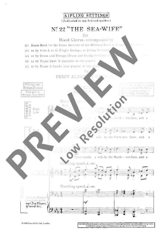 Digital Sheet Music for The Sea-Wife - Score by George Percy Aldridge Grainger scored for Mixed Choir And Piano; id:477025