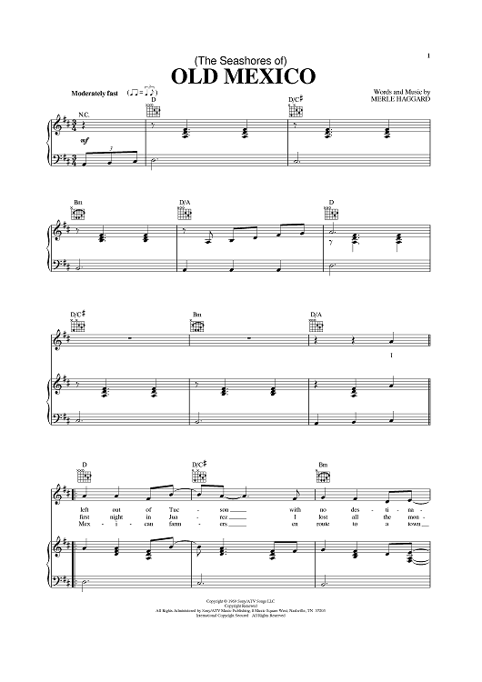 Digital Sheet Music for (The Seashores Of) Old Mexico by George Strait, Merle Haggard scored for Piano/Vocal/Chords; id:389819