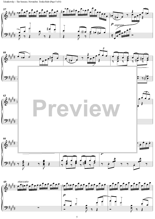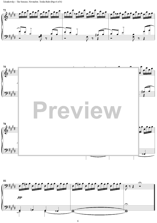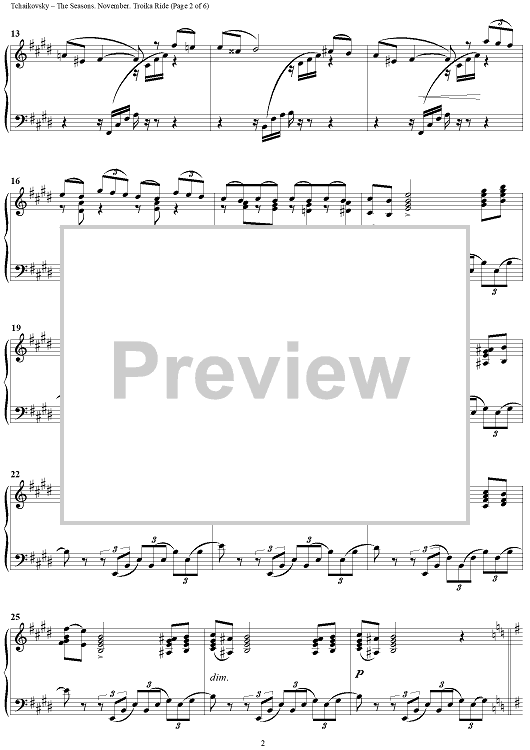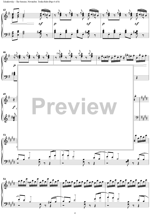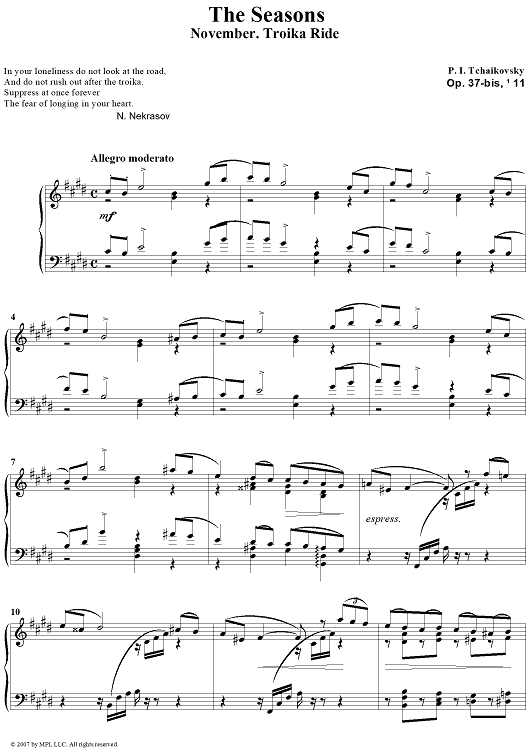 "The Seasons - November. Troika Ride" Sheet Music by Peter Ilyich Tchaikovsky