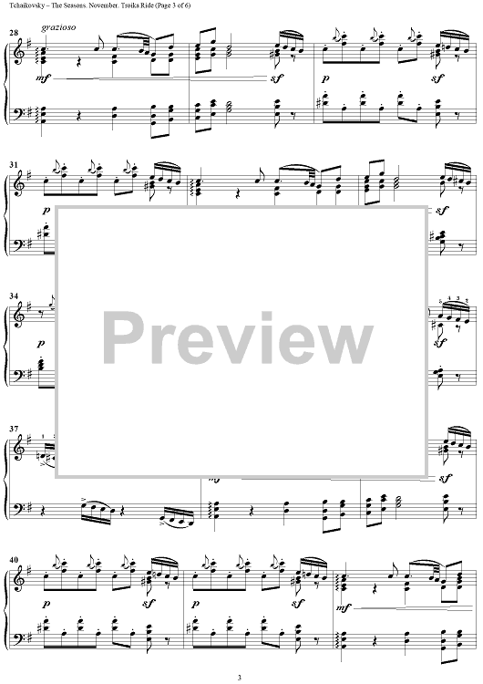 Digital Sheet Music for The Seasons - November. Troika Ride by Peter Ilyich Tchaikovsky scored for Piano Solo; id:468230