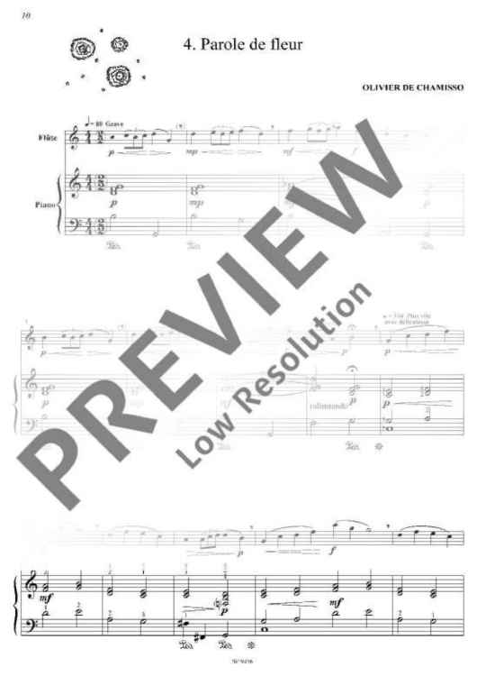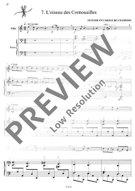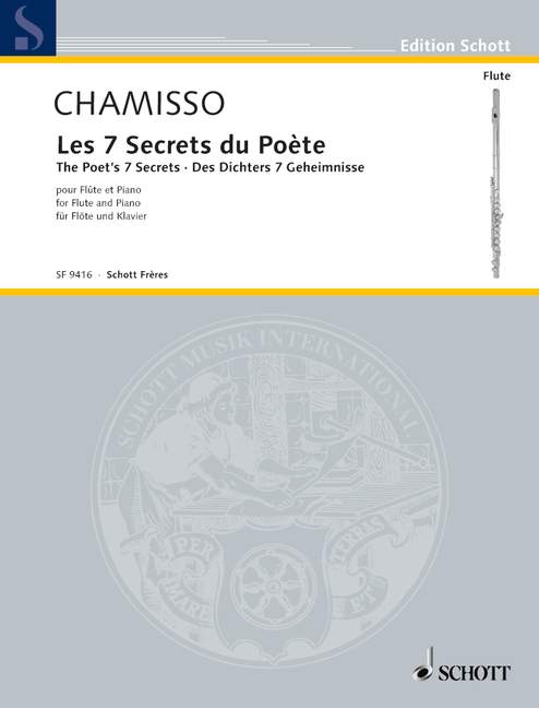 Neuauflage der Ausgabe "Les Sept Secrets Du Poète" von Olivier und Carole De Chamisso für Flöte und Klavier.