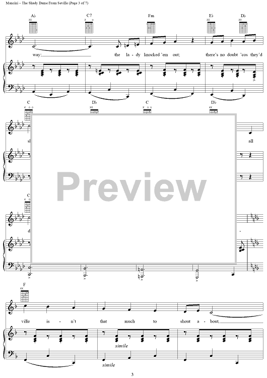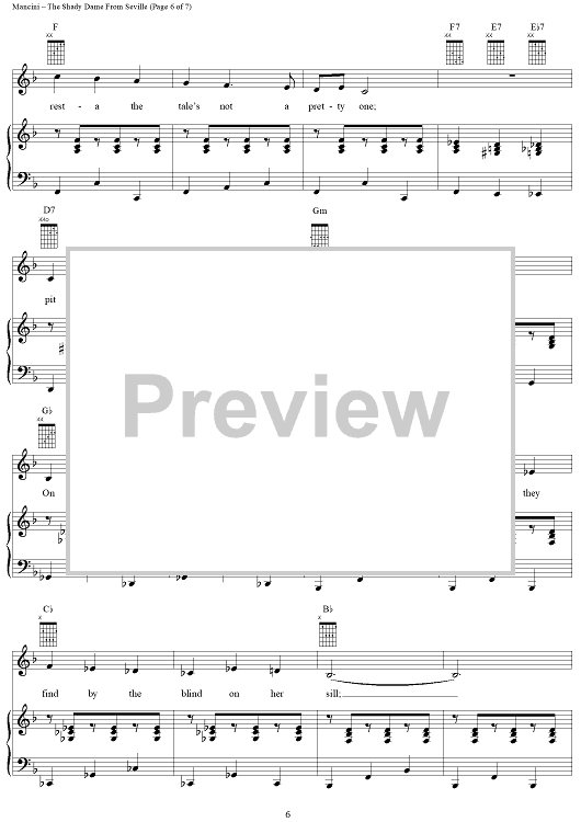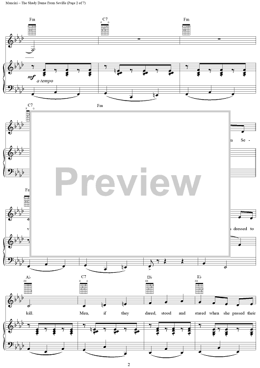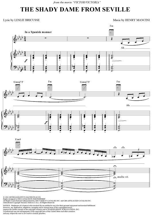 Digital Sheet Music for The Shady Dame from Seville by Henry Mancini, Leslie Bricusse scored for Piano/Vocal/Chords; id:117810