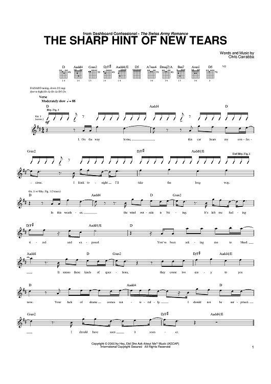 Digital Sheet Music for The Sharp Hint Of New Tears by Chris Carrabba, Dashboard Confessional scored for Guitar Tab; id:391082