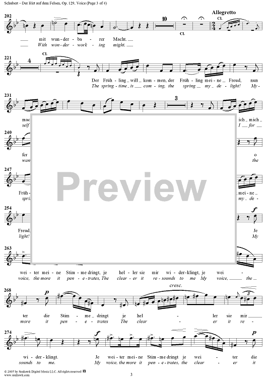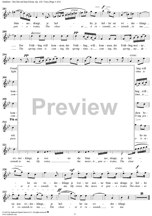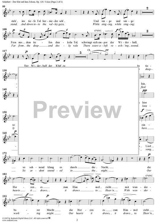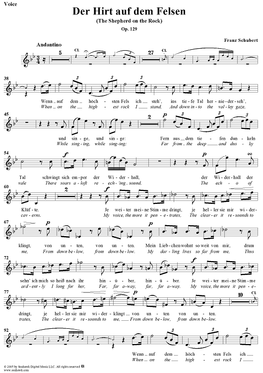 "The Shepherd On The Rock - Voice" Sheet Music by Franz Schubert