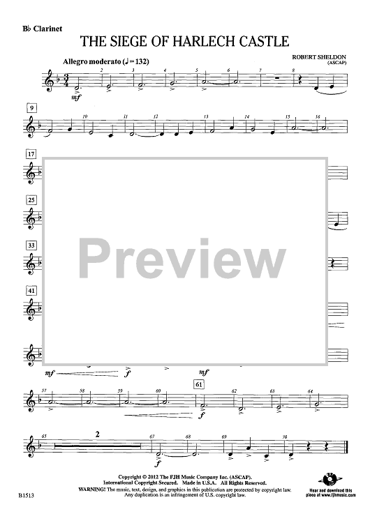 Digital Sheet Music for The Siege of Harlech Castle - Bb Clarinet by Robert Sheldon scored for Concert Band; id:439798