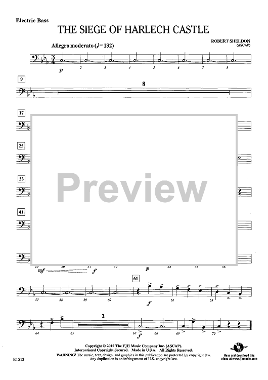 Digital Sheet Music for The Siege of Harlech Castle - Electric Bass by Robert Sheldon scored for Concert Band; id:439810