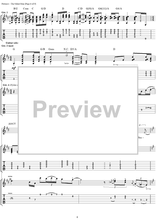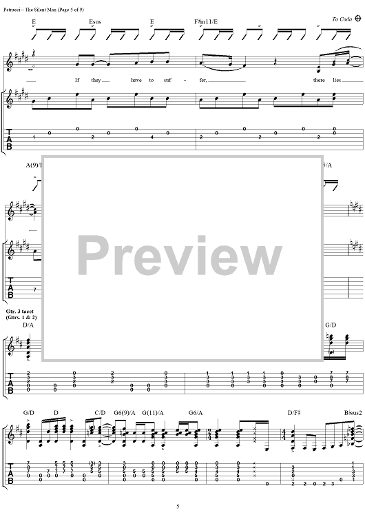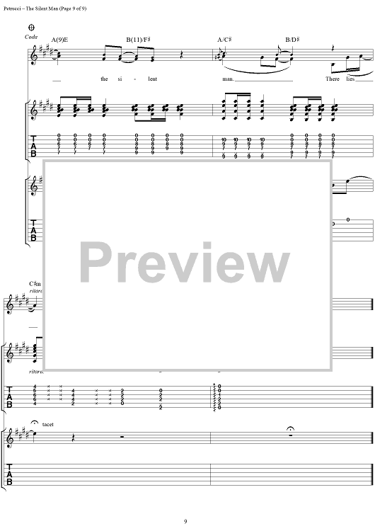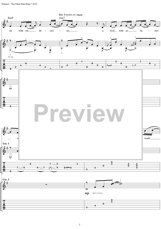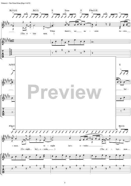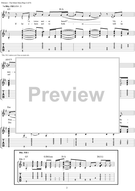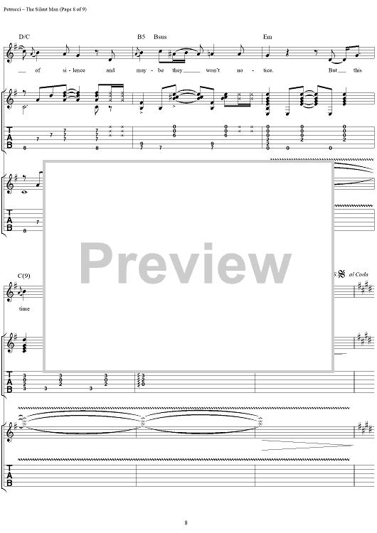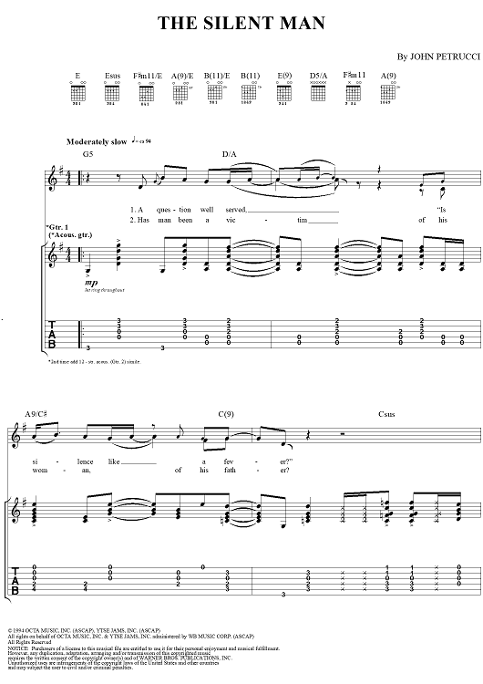 Digital Sheet Music for The Silent Man by Dream Theater, John Petrucci scored for Guitar Tab/Vocal; id:112349
