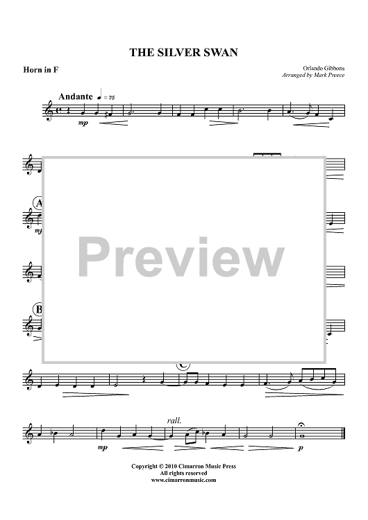 "The Silver Swan - Horn in F" Sheet Music by Orlando Gibbons