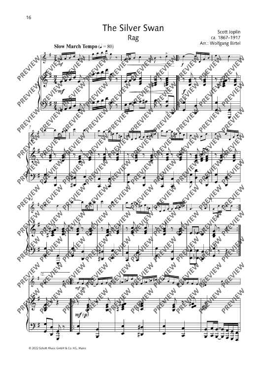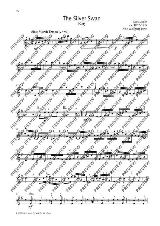 Digital Sheet Music for The Silver Swan by Scott Joplin, Wolfgang Birtel scored for Violin And Piano; id:497396