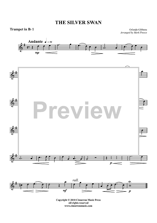 Digital Sheet Music for The Silver Swan - Trumpet 1 in Bb by Orlando Gibbons, Mark Preece scored for Brass Quintet; id:427504