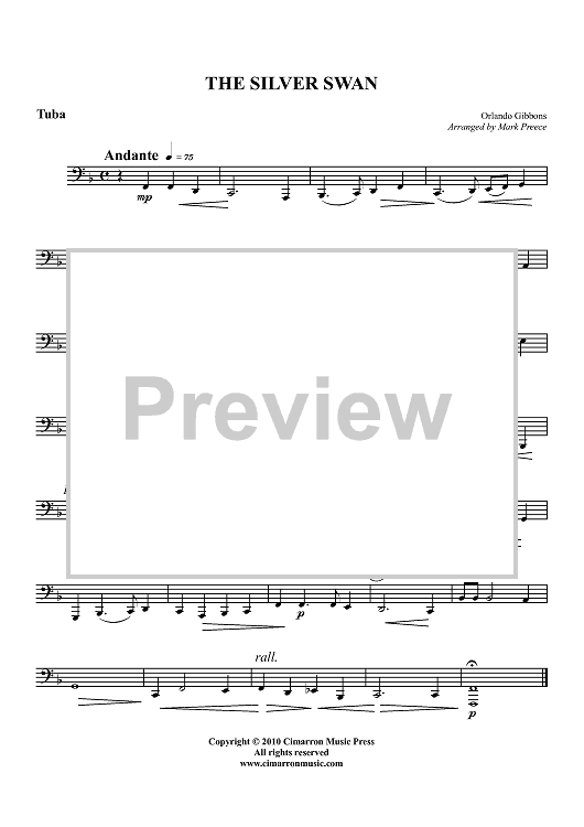 Digital Sheet Music for The Silver Swan - Tuba by Orlando Gibbons, Mark Preece scored for Brass Quintet; id:427508