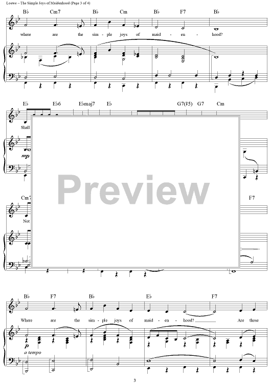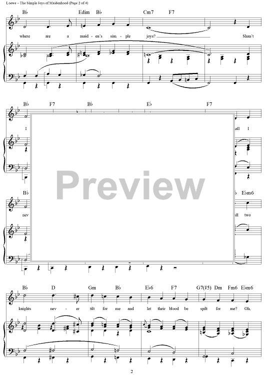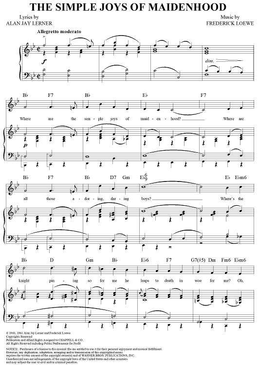 Digital Sheet Music for The Simple Joys of Maidenhood by Frederick Loewe, Alan Jay Lerner scored for Piano/Vocal/Chords; id:297833