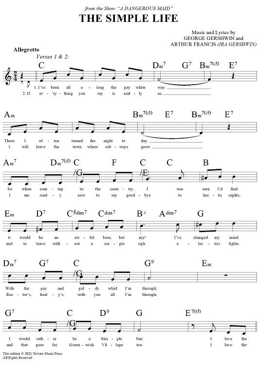 Digital Sheet Music for The Simple Life by , George Gershwin, Ira Gershwin scored for Lead Sheet; id:283724