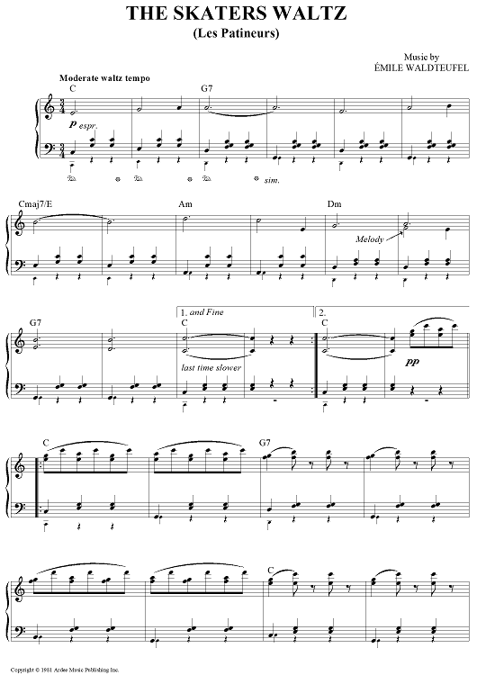 Digital Sheet Music for The Skaters Waltz (Les Patineurs) by Emile Waldteufel scored for Easy Piano/Chords; id:431912