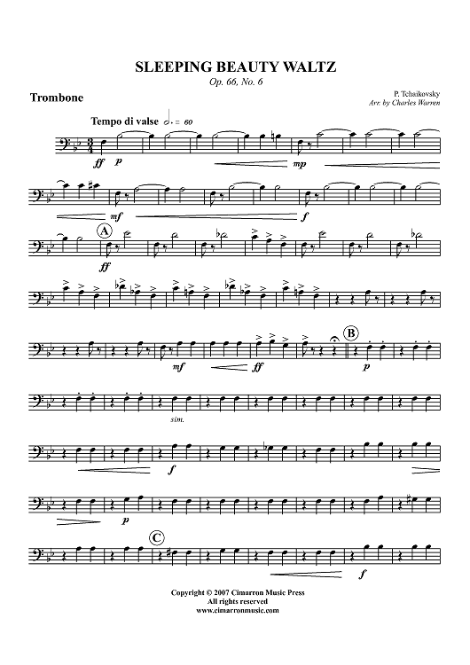 "The Sleeping Beauty. Act I, No. 6. Valse (Theme) - Trombone" Sheet Music by Peter Ilyich Tchaikovsky