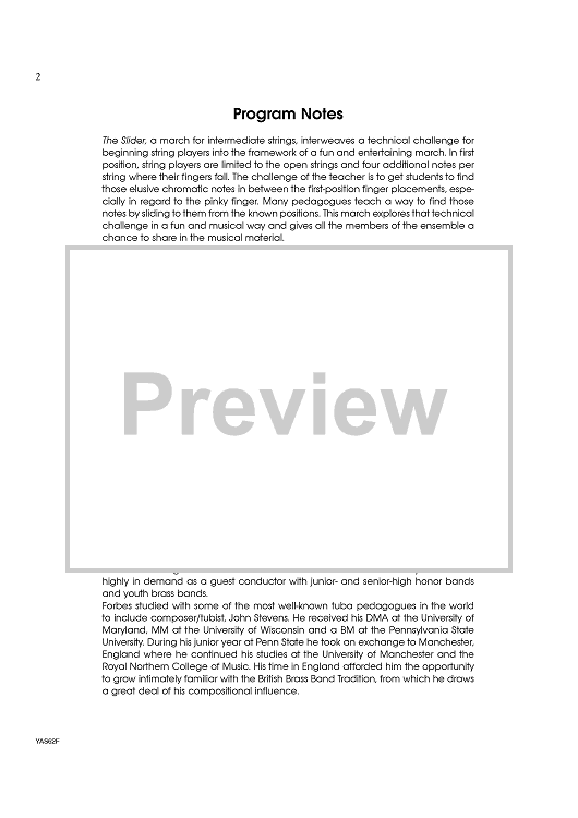 Digital Sheet Music for The Slider - Score by Mike Forbes scored for Orchestra; id:406927