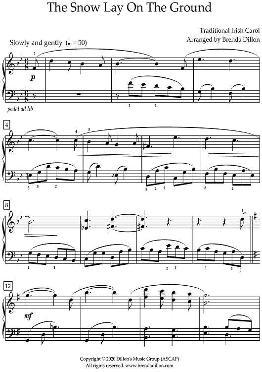 Digital Sheet Music for The Snow Lay On The Ground by Brenda Dillon, Traditional Irish Carol scored for Piano; id:469312
