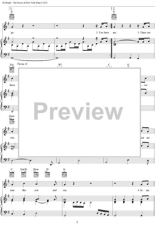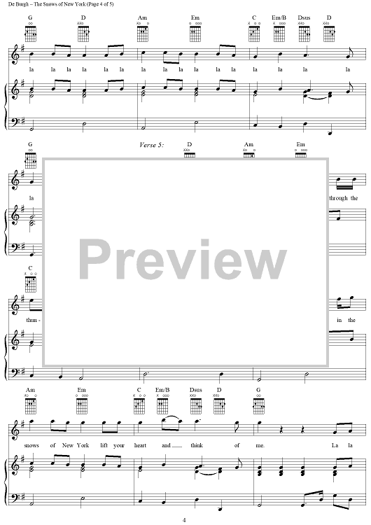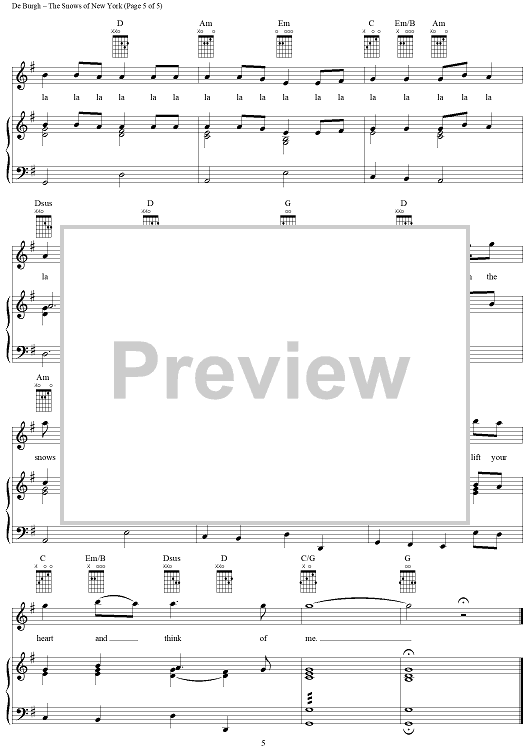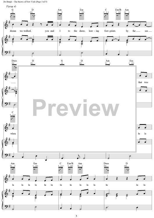 "The Snows of New York" Sheet Music by Chris de Burgh