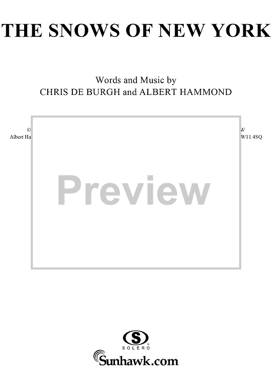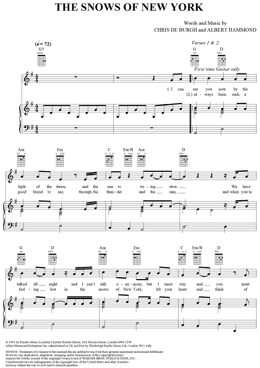 Digital Sheet Music for The Snows of New York by Albert Hammond, Chris de Burgh scored for Piano/Vocal/Chords; id:271696
