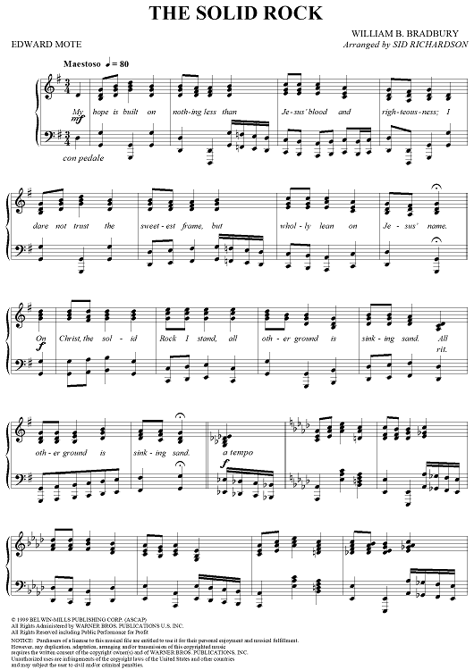 Digital Sheet Music for The Solid Rock by Sid Richardson, Edward Mote, William B. Bradbury scored for Piano Solo; id:273845
