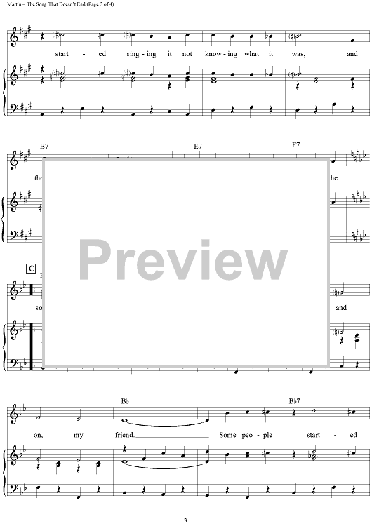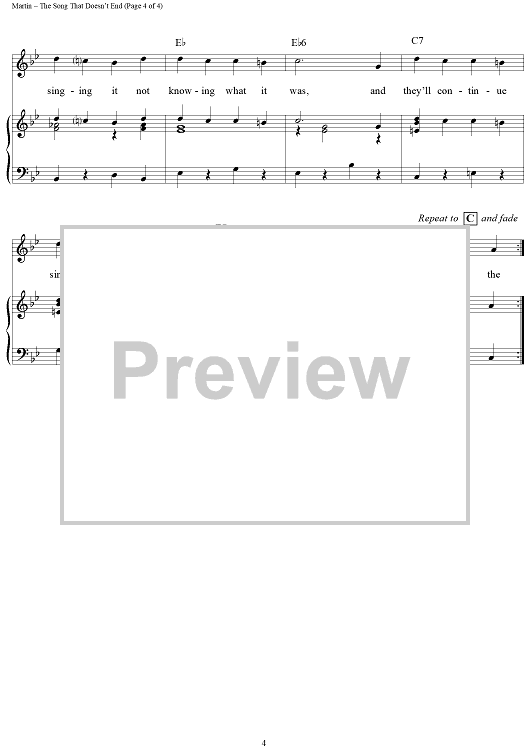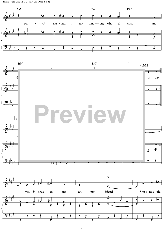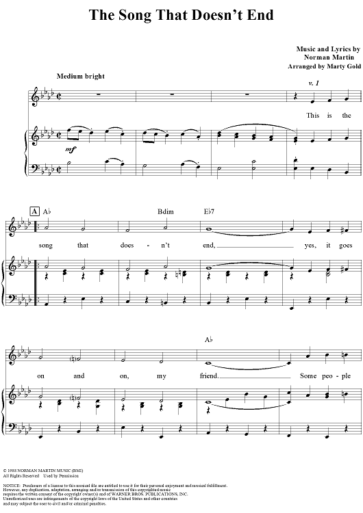 Digital Sheet Music for The Song That Doesn't End by Norman Martin, Marty Gold scored for Piano/Vocal/Chords; id:111803