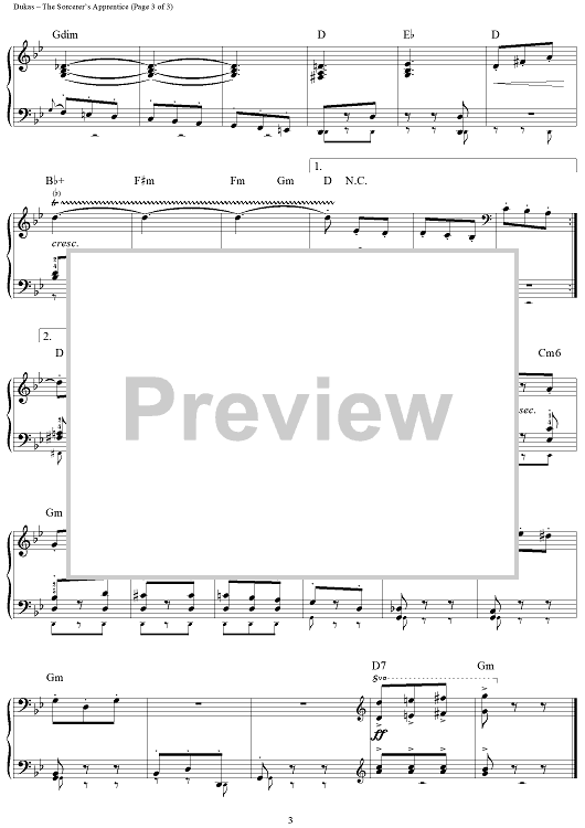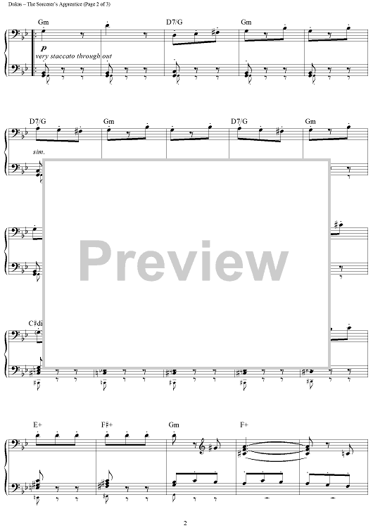 Digital Sheet Music for The Sorcerer's Apprentice by Paul Dukas scored for Easy Piano/Chords; id:437297