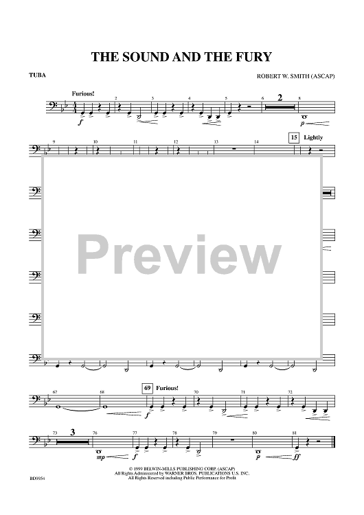 Digital Sheet Music for The Sound and the Fury - Tuba by Robert W. Smith scored for Concert Band; id:310217