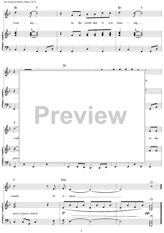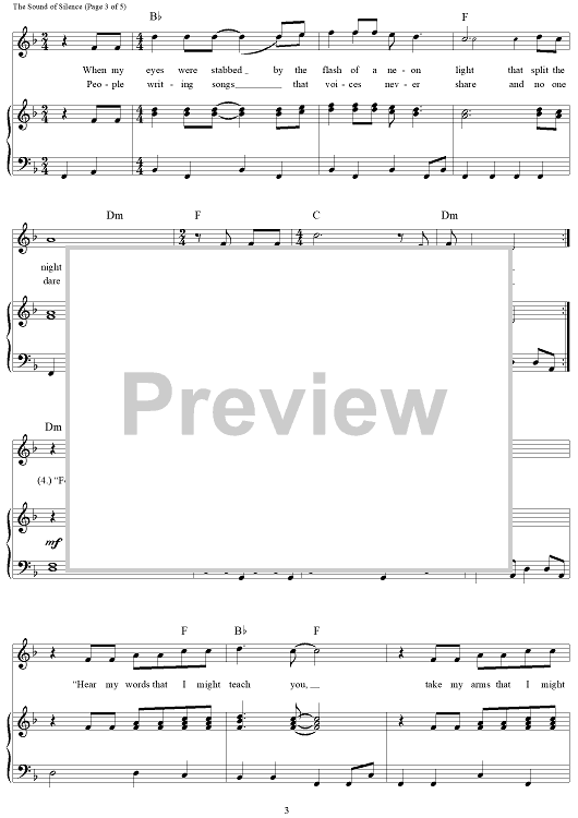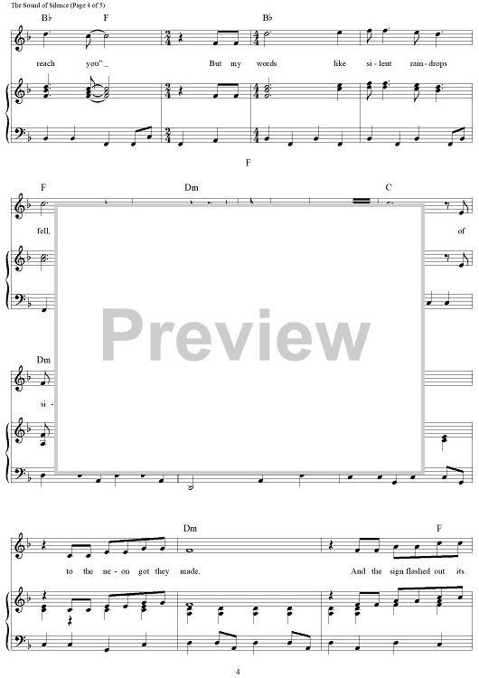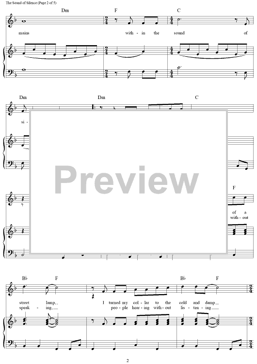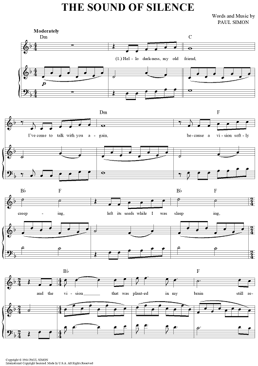 Digital Sheet Music for The Sound of Silence by Paul Simon, Simon & Garfunkel scored for Piano/Vocal/Chords; id:257741