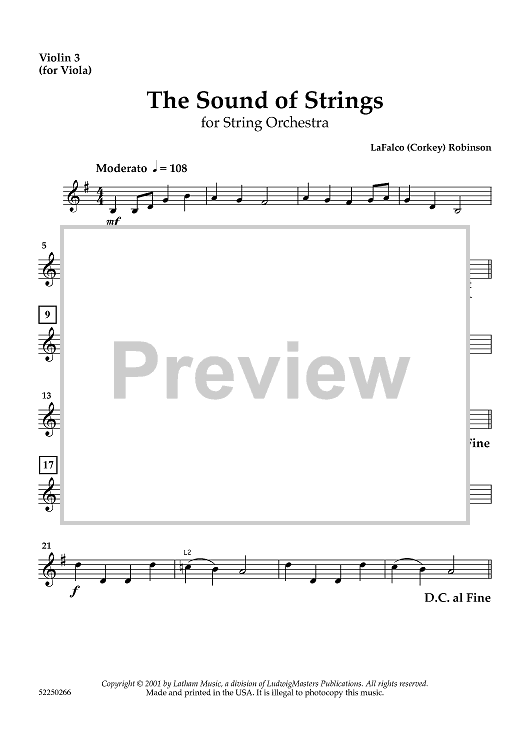 Digital Sheet Music for The Sound of Strings - Violin 3 (for Viola) by LaFalco (Corkey) Robinson scored for String Orchestra; id:458661