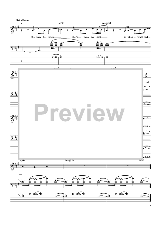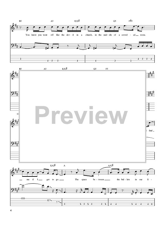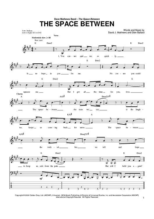 Digital Sheet Music for The Space Between by Glen Ballard, Dave Matthews Band, Dave Matthews scored for Bass Tab; id:374897