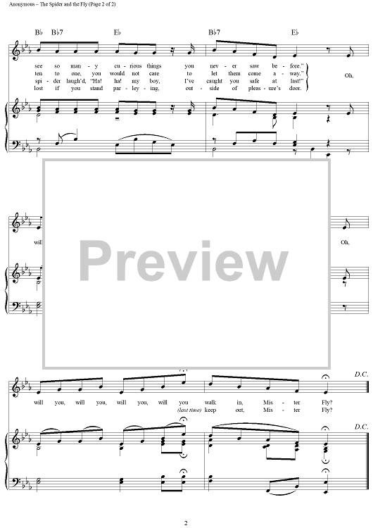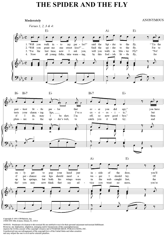 Digital Sheet Music for The Spider and the Fly by Unknown Writer scored for Piano/Vocal/Chords; id:277330