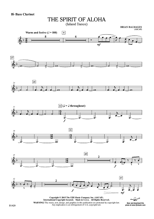 Digital Sheet Music for The Spirit of Aloha (Island Dance) - Bb Bass Clarinet by Brian Balmages scored for Concert Band; id:454601