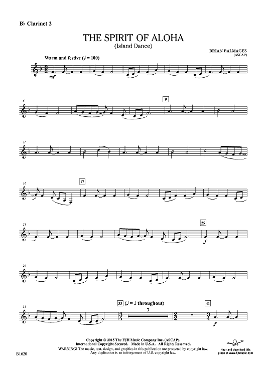 Digital Sheet Music for The Spirit of Aloha (Island Dance) - Bb Clarinet 2 by Brian Balmages scored for Concert Band; id:454599