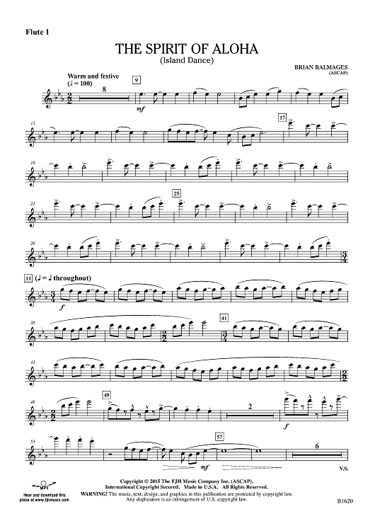 "The Spirit of Aloha (Island Dance) - Flute 1" Sheet Music by Brian Balmages