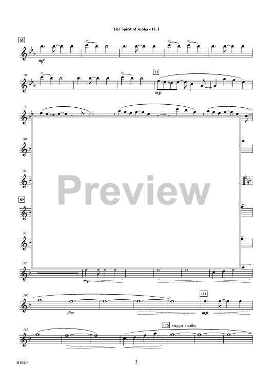 Digital Sheet Music for The Spirit of Aloha (Island Dance) - Flute 1 by Brian Balmages scored for Concert Band; id:454594