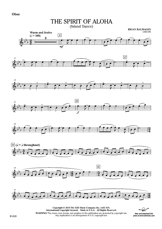 "The Spirit of Aloha (Island Dance) - Oboe" Sheet Music by Brian Balmages