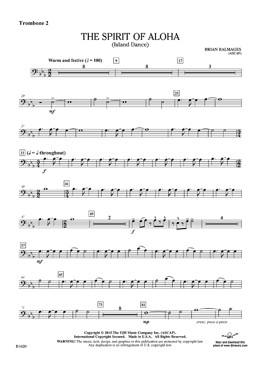 "The Spirit of Aloha (Island Dance) - Trombone 2" Sheet Music by Brian Balmages