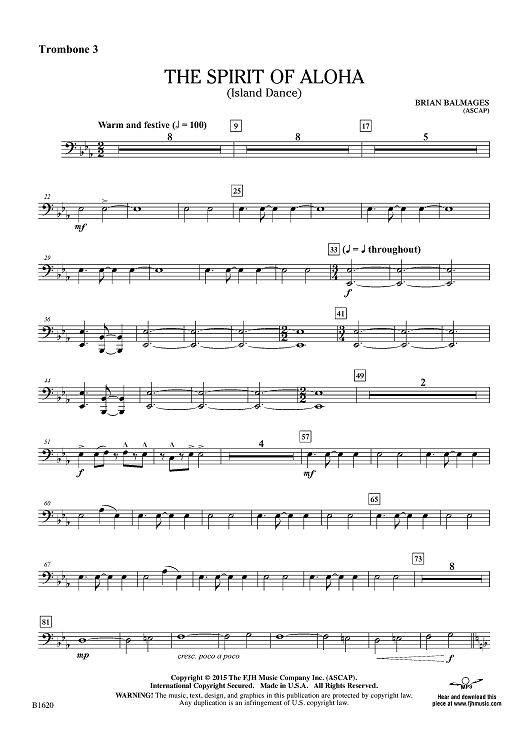 "The Spirit of Aloha (Island Dance) - Trombone 3" Sheet Music by Brian Balmages