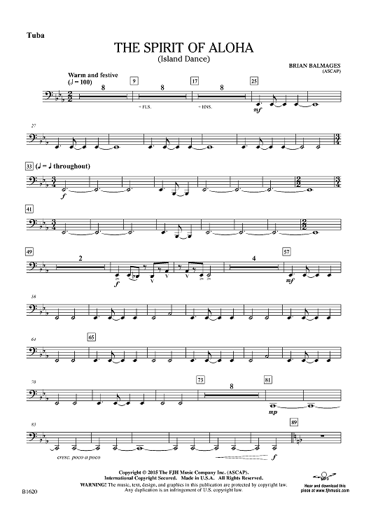 Digital Sheet Music for The Spirit of Aloha (Island Dance) - Tuba by Brian Balmages scored for Concert Band; id:454617