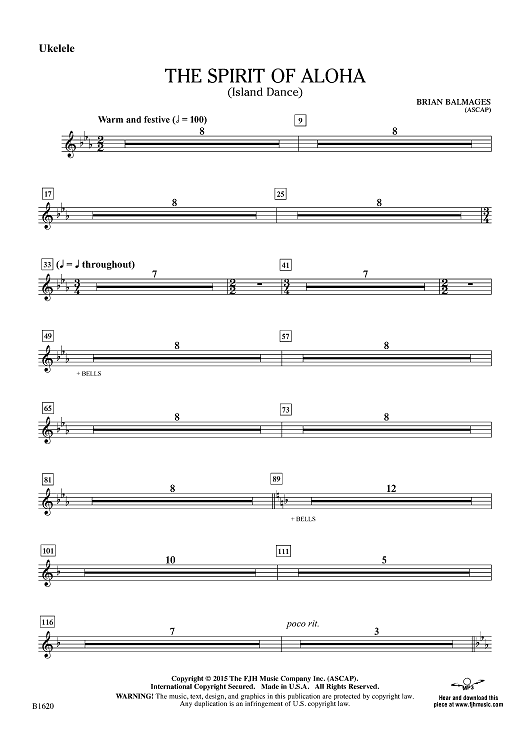 Digital Sheet Music for The Spirit of Aloha (Island Dance) - Ukulele (opt.) by Brian Balmages scored for Concert Band; id:454625