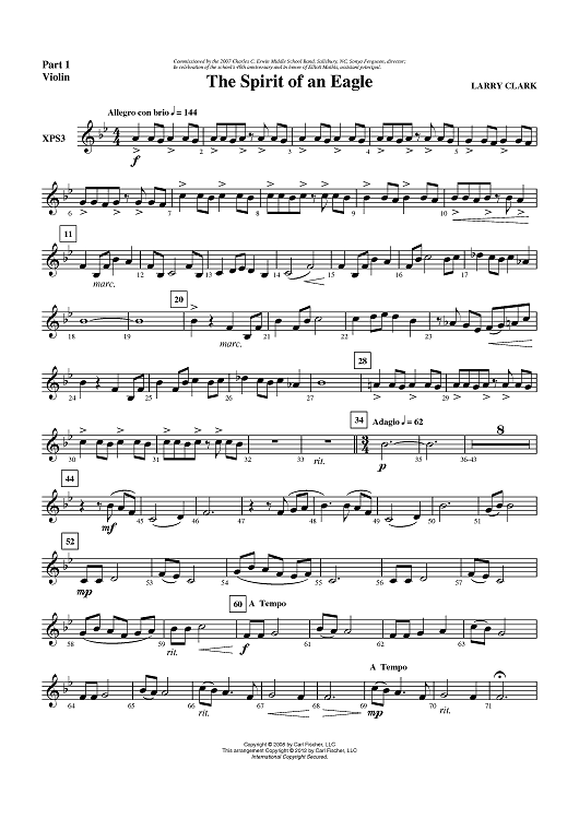 "The Spirit of an Eagle - Part 1 Violin" Sheet Music by Larry Clark