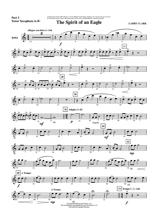 "The Spirit of an Eagle - Part 3 Tenor Sax" Sheet Music by Larry Clark