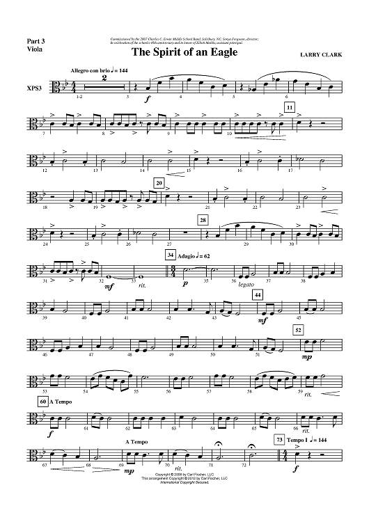 "The Spirit of an Eagle - Part 3 Viola" Sheet Music by Larry Clark