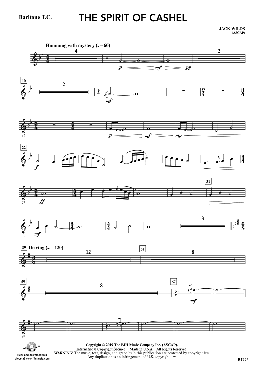 "The Spirit of Cashel - Baritone TC" Sheet Music by Jack Wilds