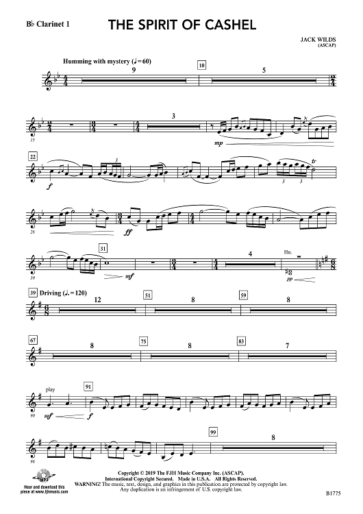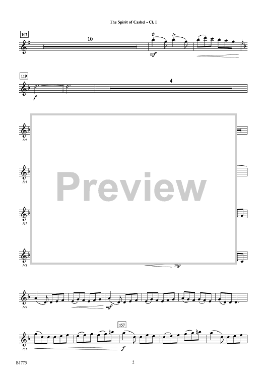 Digital Sheet Music for The Spirit of Cashel - Bb Clarinet 1 by Jack Wilds scored for Concert Band; id:510473