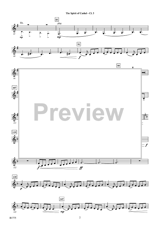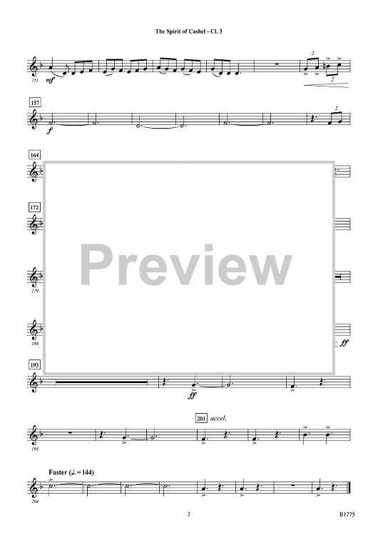 Digital Sheet Music for The Spirit of Cashel - Bb Clarinet 3 by Jack Wilds scored for Concert Band; id:510475