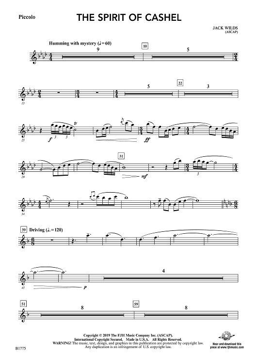 "The Spirit of Cashel - Piccolo" Sheet Music by Jack Wilds