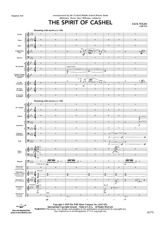 "The Spirit of Cashel - Score" Sheet Music by Jack Wilds